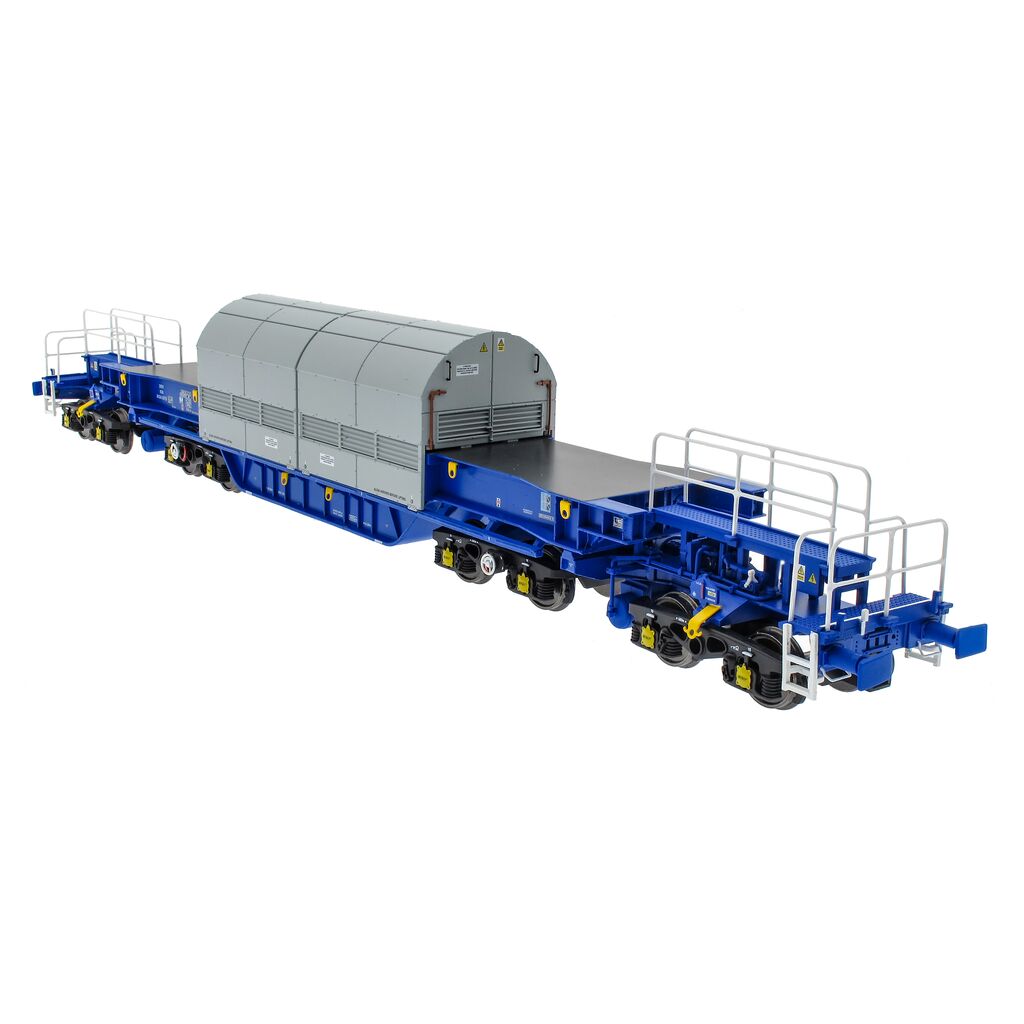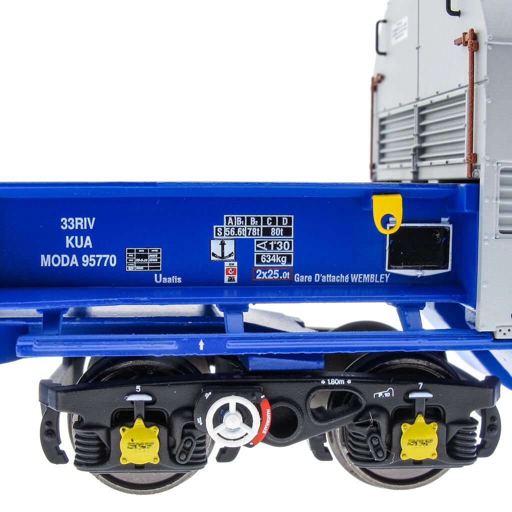 These impressive wagons were built by Bombardier/Prorail of Wakefield in 1998 and designed to carry spent nuclear fuel from Royal Navy nuclear submarines from their bases at Devonport and Rosyth to Sellafield for disposal and typically ran with double headed Class 37/6 locomotives.