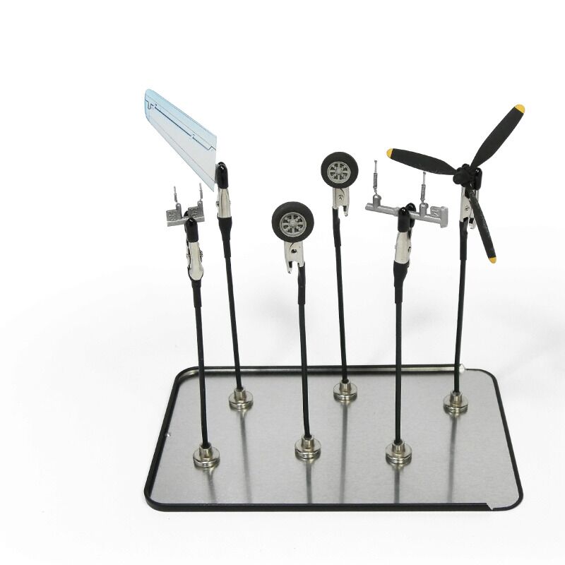 Magnetic Jaws are a complete set of modeling tools designed to meet the needs of the most demanding aficionados. This set includes 12 bendable alligator clip sticks with non-slip rubber tips and magnet bases that ensure a secure placement and convenience when working with small and delicate parts.
